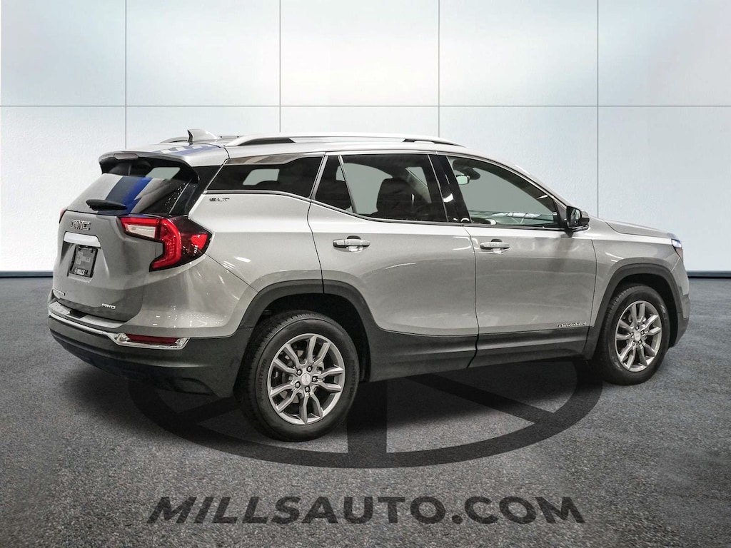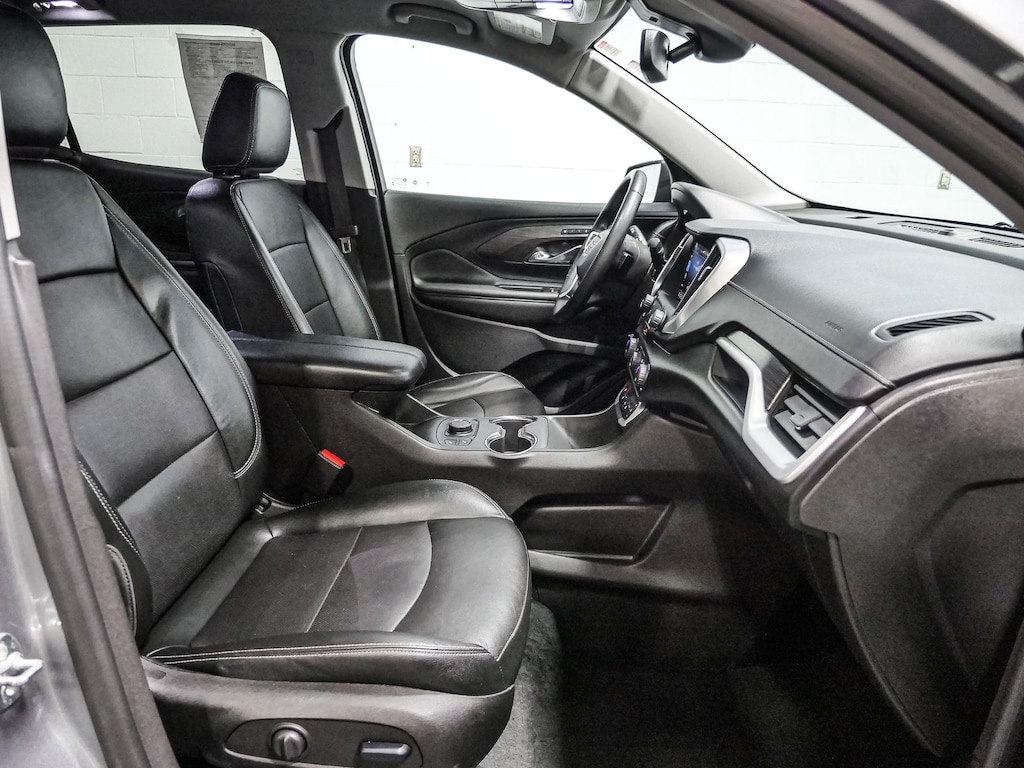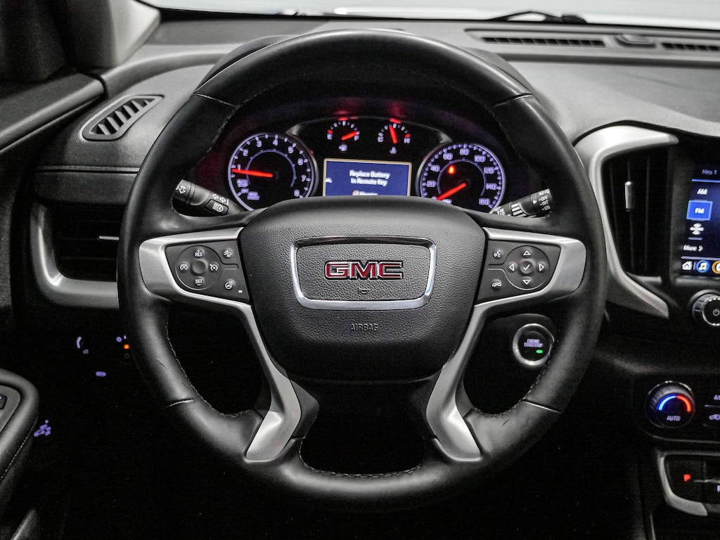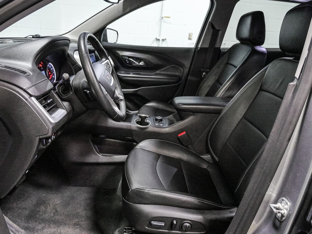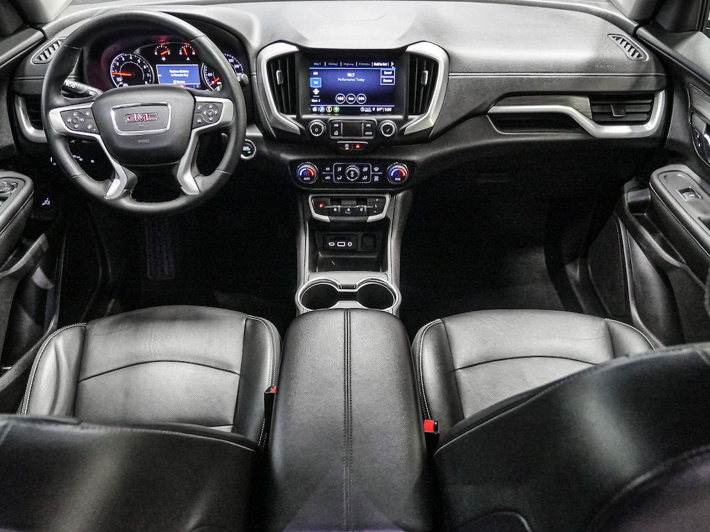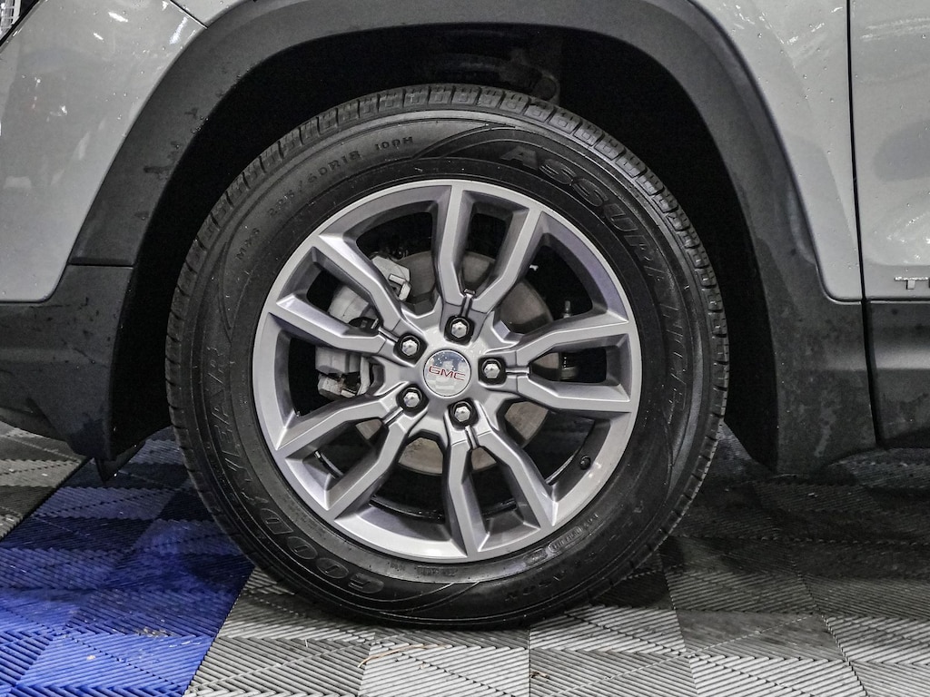 License Plate Front Mounting Package, Preferred Equipment Group 4SA, 2 USB Data Ports, 2 USB Data Ports w/SD Card Reader, 3.47 Final Drive Axle Ratio, 4-Wheel Disc Brakes, 6 Speakers, 6-Speaker Audio System Feature, 6-Way Power Front Passenger Seat, 8-Way Power Driver Seat Adjuster, ABS brakes, Air Conditioning, Alloy wheels, AM/FM radio: SiriusXM, Auto High-beam Headlights, Auto-dimming Rear-View mirror, Automatic temperature control, Bluetooth® For Phone, Brake assist, Bumpers: body-color, Compass, Delay-off headlights, Driver & Front Passenger Heated Seats, Driver door bin, Driver vanity mirror, Dual front impact airbags, Dual front side impact airbags, Electronic Stability Control, Emergency communication system: OnStar and GMC connected services capable, Four wheel independent suspension, Front anti-roll bar, Front Bucket Seats, Front Center Armrest, Front dual zone A/C, Front fog lights, Front Passenger 2-Way Power Lumbar, Front reading lights, Fully automatic headlights, Garage door transmitter, Heated door mirrors, Heated front seats, Heated steering wheel, Illuminated entry, Low tire pressure warning, Memory seat, Occupant sensing airbag, Outside temperature display, Overhead airbag, Overhead console, Panic alarm, Passenger door bin, Passenger vanity mirror, Perforated Leather-Appointed Seat Trim, Power door mirrors, Power Driver Lumbar Control, Power driver seat, Power Liftgate, Power passenger seat, Power steering, Power windows, Radio data system, Radio: GMC Infotainment Audio System w/8" Display, Rear anti-roll bar, Rear seat center armrest, Rear window defroster, Rear window wiper, Remote keyless entry, Roof rack: rails only, Security system, SiriusXM, Speed control, Speed-sensing steering, Split folding rear seat, Spoiler, Steering wheel mounted audio controls, Tachometer, Telescoping steering wheel, Tilt steering wheel, Traction control, Trip computer, Turn signal indicator mirrors, Variably intermittent wipers, Wheels: 18" x 7" Silver Painted Aluminum, and Wireless Apple CarPlay/Wireless Android Auto.